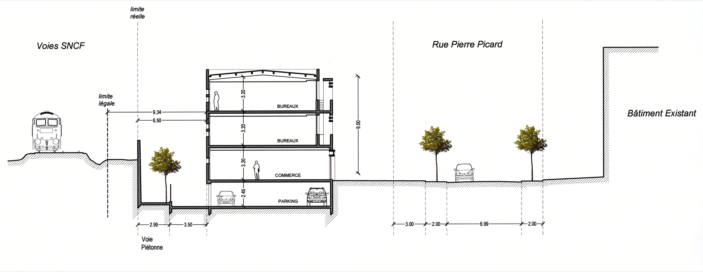 Programme : Immeuble de bureaux et aménagement espace Gare avec parking public